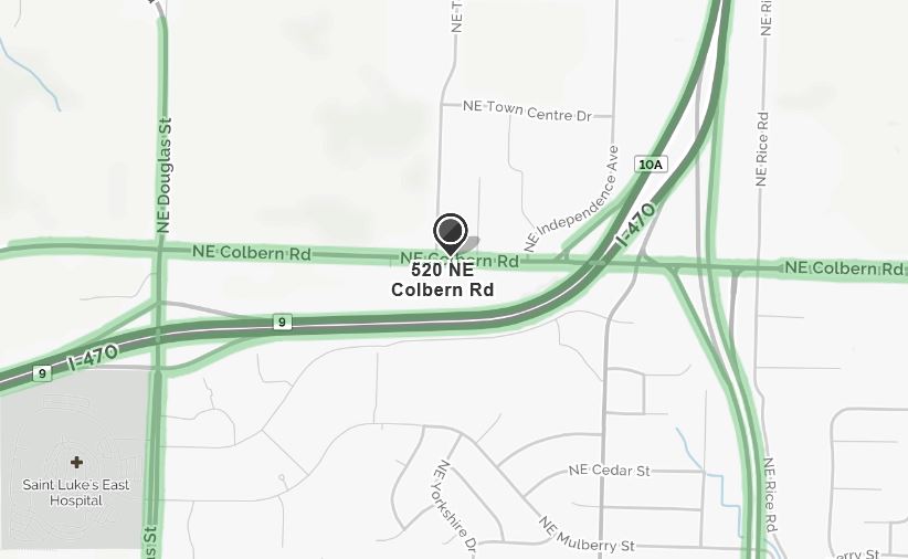 right on Colbern by I-470 10A and 9 Exits in Lee's Summit. You may